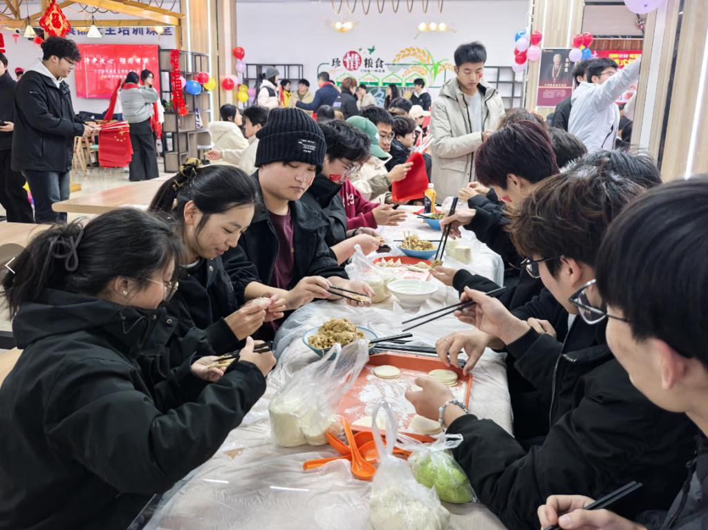 活动在师生齐唱《我和我的祖国》中拉开序幕,激昂的歌声展现了学子昂扬向上的精神风貌。随后,校领导与师生们围坐在一起,动手包饺子、聊生活,现场笑语盈盈、暖意融融。大家在协作中体验冬至传统习俗,也深切感受到学院大家庭的温暖与团结。