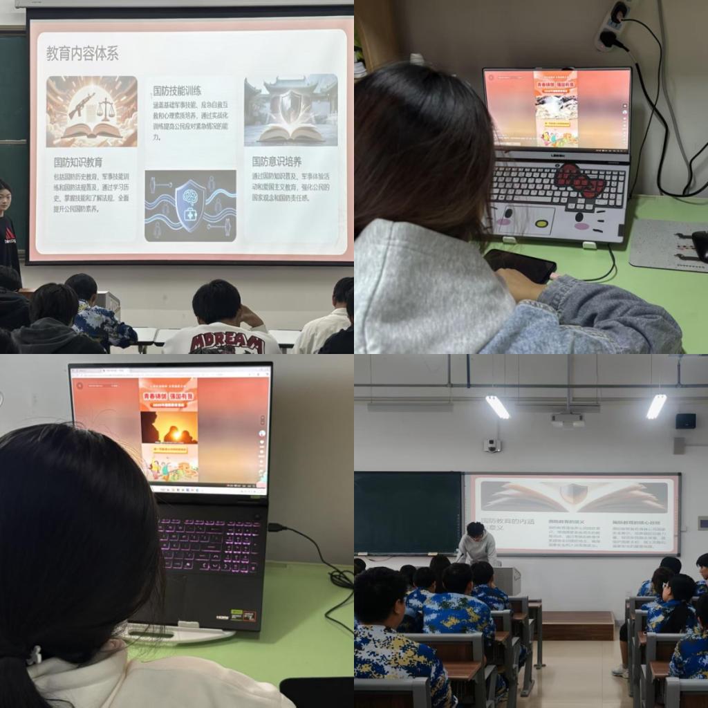 本次活动分为线上线下两个部分。线上部分,组织学生通过抖音平台自主学习国防教育课程;线下部分,则以“青春铸剑 强国有我”为主题,开展专题讲座。在学习过程中,同学们深刻认识到,国防教育并非仅仅涉及军事知识,而是以爱国主义为核心,旨在增强全民国防观念、提升国家安全意识、普及国防知识技能的综合性教育。