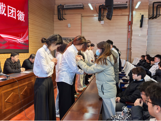 随后,刘迪宣读新团员名单。全体辅导员共同为新团员代表颁发团徽和团员证。闪亮的团徽佩戴胸前,象征着光荣,更意味着责任。