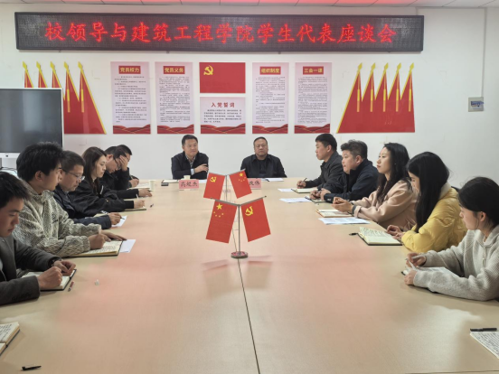 10月23日下午,球王会体育平台网页在51225会议室组织召开校领导与学生代表座谈会。校党委副书记高超杰出席会议,建筑工程学院党总支书记乔改伟、教学科研工作负责人李佳、学生工作负责人卢克斌、党政办负责人王亚楠、产教融合办负责人杨龙、学工办负责人刘欣、团总支书记刘迪、全体辅导员及2024级、2025级学生代表参加。座谈会由乔改伟主持。