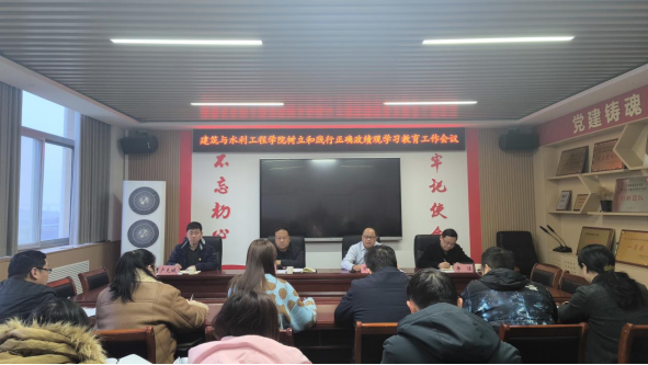 3月6日,建筑与水利工程学院党总支召开全体党员大会,启动部署树立和践行正确政绩观学习教育,党委委员、副院长黄世谋出席会议并讲话,党总支书记乔改伟主持会议。