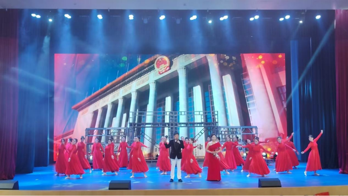 整场演出中,刘迪老师以细腻的情感讲述了三门峡职业技术学院的风雨历程,生动复现迎新场景,表达了对新生的热烈欢迎,彰显了师生同心的温暖底色。球王会体育平台网页2024级、2025级的80名学生参演了第一篇章“大河涛声”中的《抗日军政大学校歌》、第二篇章“学海无涯”中的《抢》等多个节目,以昂扬的精神风貌展现了新时代青年投身祖国建设的坚定信念。晚会最后,刘欣老师献唱《我们的新时代》,更是将现场氛围推向高潮。醇厚的歌声中满含对祖国76华诞的礼赞,也寄托着对青年学子成长成才的殷切期望,赢得了台下师生此起彼伏的掌声与欢呼。
