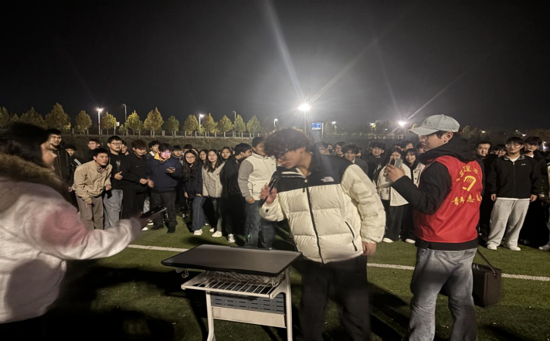 活动伊始,卢克斌以殷切寄语送上热情洋溢的美好祝福,激励同学们在户外集体活动中释放青春活力、展现个人风采。随后,韩毅与杨一帆献上精彩的暖场才艺表演,赢得观众如雷的掌声。主持人详尽阐述了比赛规则:赛事以班级为单位,通过“极速热身赛”和“班级对抗赛”两轮激烈比拼角逐冠亚季军;全程采用抢答模式,答题时间限制为20秒,超时自动弃权;积分实时公布,确保比赛公平、公正、公开。随着首轮“极速热身赛”拉开帷幕,经典老歌与热门金曲的动人旋律在南操场回荡,各代表队反应迅捷、配合默契,抢答环节紧张刺激又妙趣横生。班级助威团的呐喊声与欢呼声此起彼伏,为现场注入澎湃活力,将活动氛围一次次推向高潮,让走出宿舍的同学们尽情感受集体活动的无限欢乐。