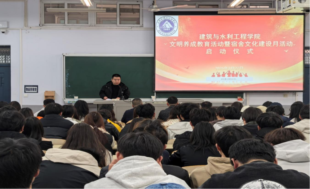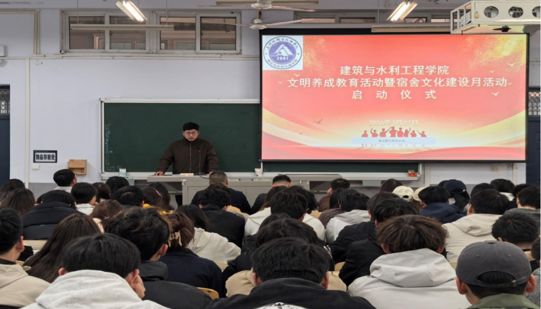仪式上,学院辅导员王波详细解读了宿舍文化建设月活动方案,明确了活动目标与具体安排;学院辅导员伍博皇宣读了《建筑与水利工程学院宿舍文明行为公约》,围绕安全规范、卫生规范、和谐规范、形象规范四个方面,向全体同学发出了共建安全、干净、和谐宿舍的倡议;学生代表、学院自管会宿管部孙凯阳同学在发言中号召大家做宿舍文明的践行者、情谊的守护者和活动的积极参与者,让每一间宿舍都充满温暖与朝气。