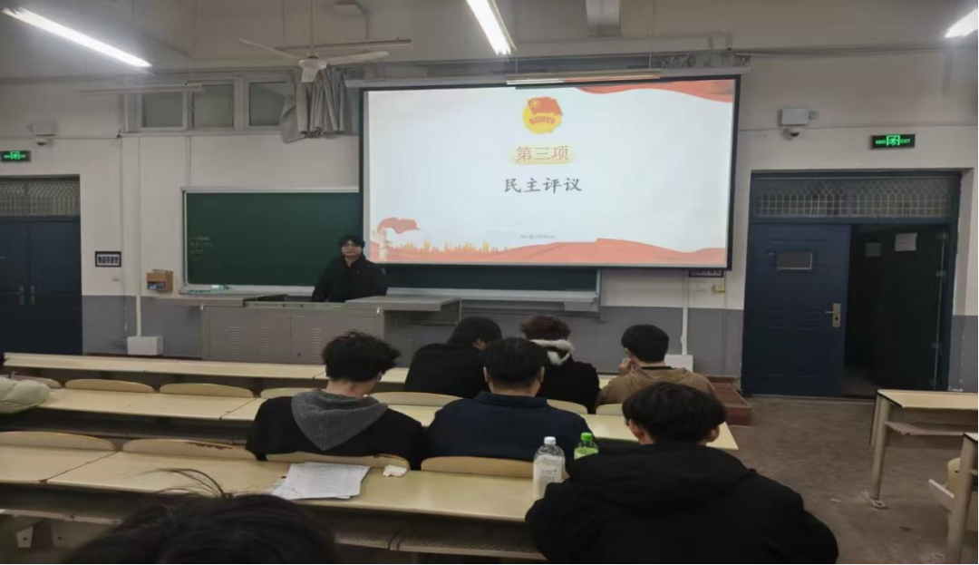 会议第三项,民主评议。全体团员围绕思想政治、学习工作、作用发挥、纪律作风等维度开展无记名民主测评,过程规范有序,评议结果真实反映团员表现,增强了团员身份意识和责任意识,营造比学赶超、争先创优的良好氛围。