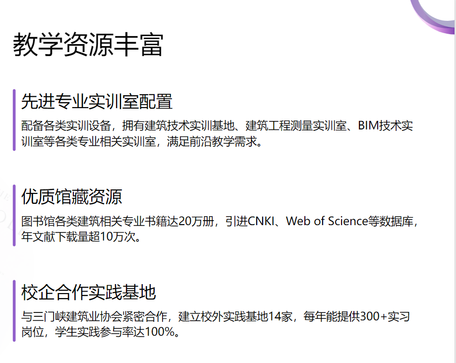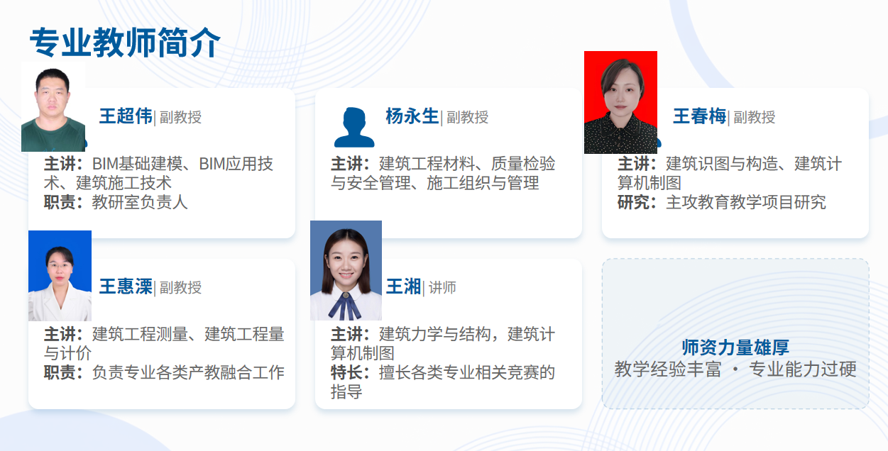 2005年被评为河南省教学改革试点专业;2012年被批准为河南省骨干院校建设重点建设专业;2018年完成高等职业教育创新发展行动计划(2015-2018年)建设任务,被确定为球王会体育平台网页骨干专业;2022年建筑工程技术专业被中国科教评价网(金苹果)评为4星专业。