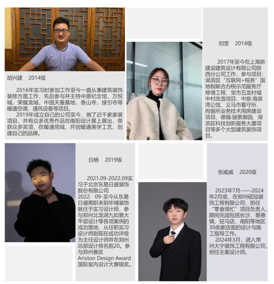 本专业的毕业生在步入职场后,凭借扎实的专业知识与过硬的实践技能,迅速在行业中站稳脚跟,收获了用人单位的高度赞誉。他们在各类项目中展现出卓越的设计才华、精细的施工把控能力,无论是大型商业综合体的华丽装修,还是温馨住宅空间的匠心雕琢,都能出色完成任务,以高质量成果赢得业界信赖。
